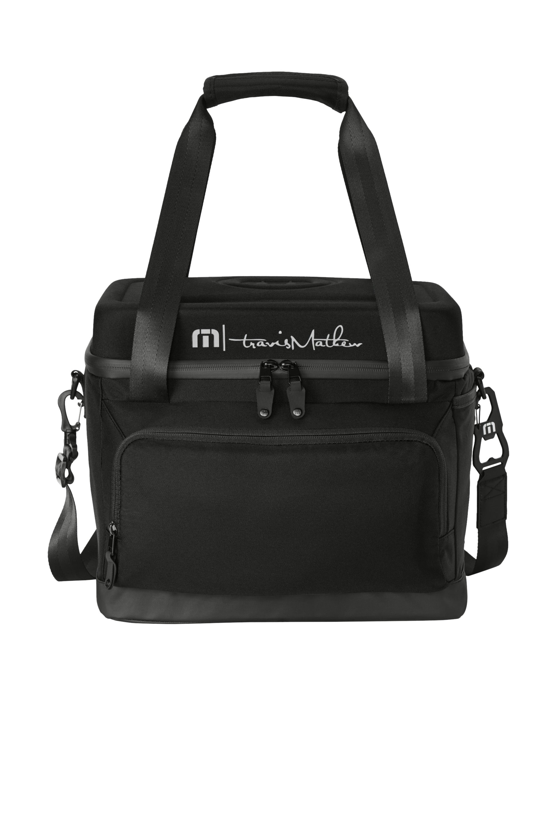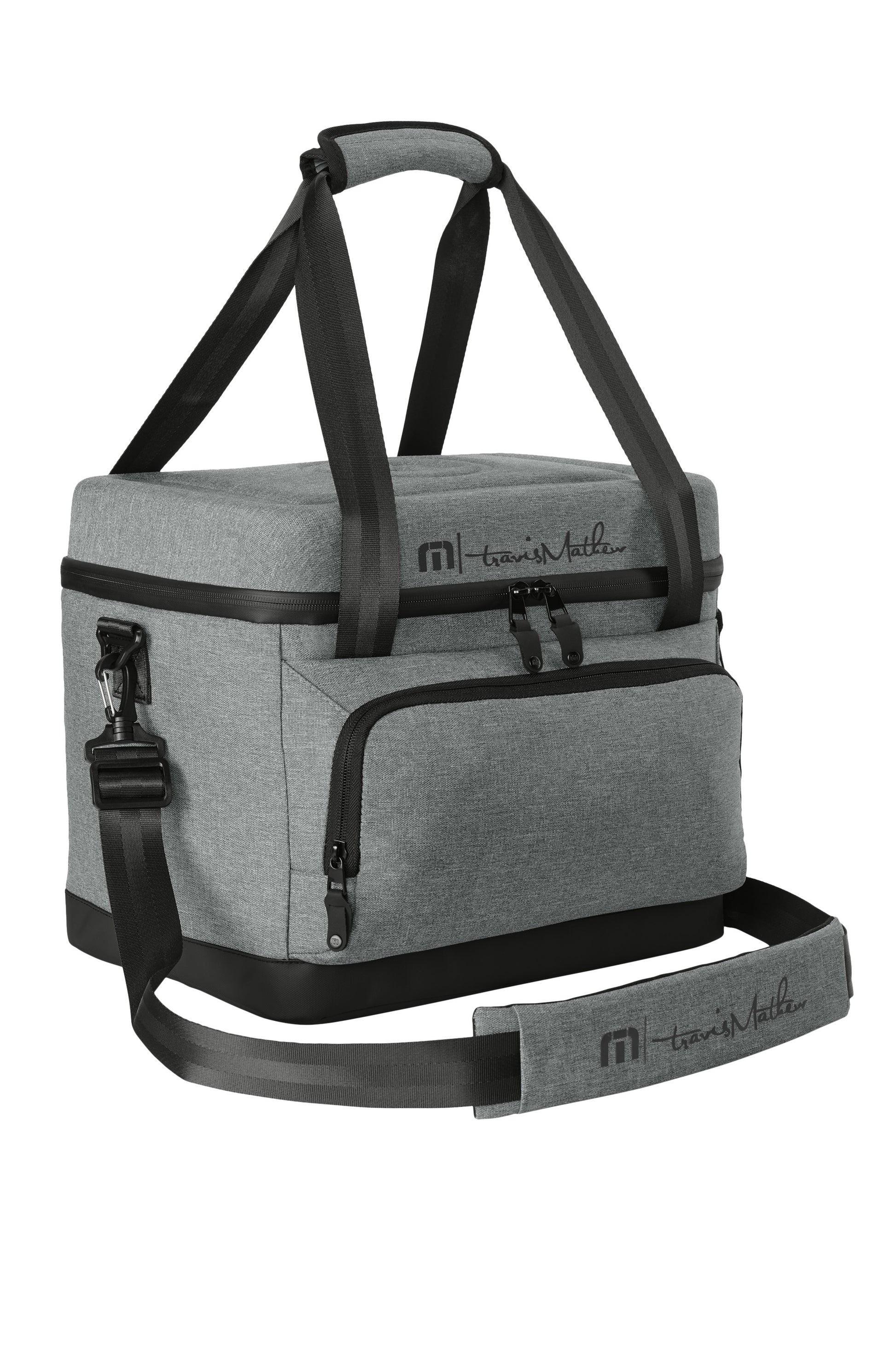 - Molded top panel with interior storage and heat transfer TravisMathew logo